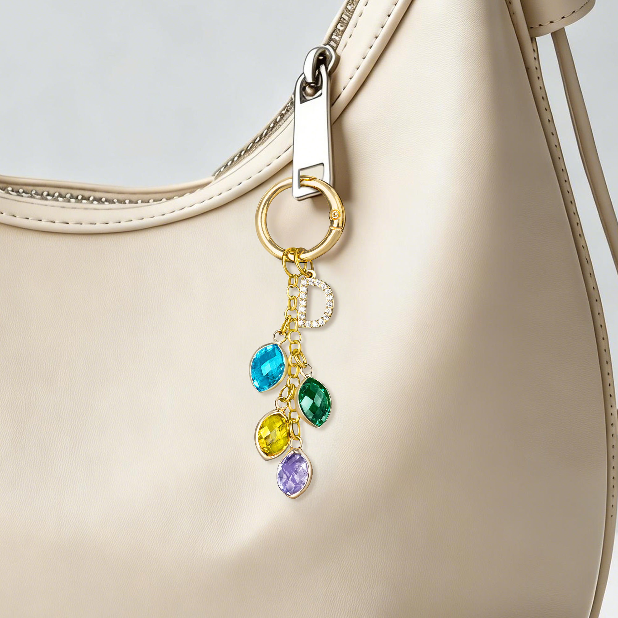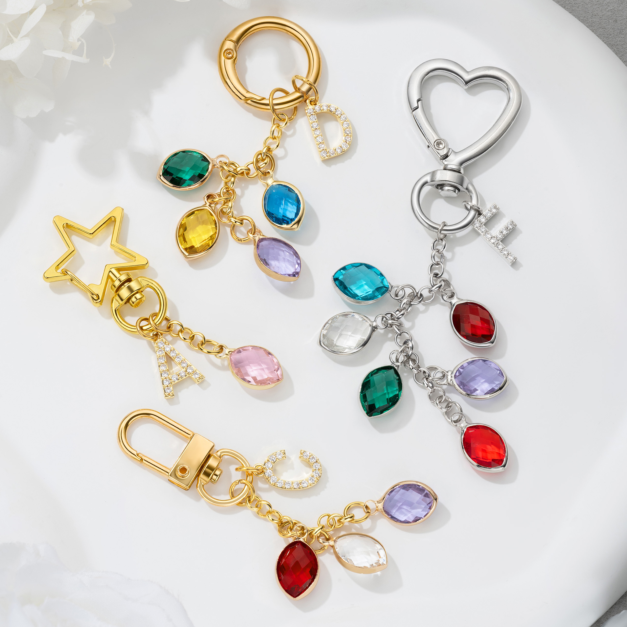 Personalized 1-6 Birthstones Keychain with Cubic Zirconia Initial, Family Birthstones Bag Charm, Birthday/Mother's Day Gift for Her/Mom/Grandma